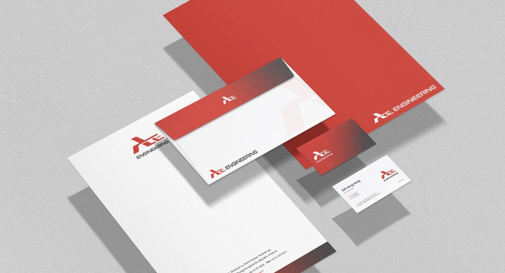 ACE 네이밍과 역동성과 정밀함을 갖춘 기술 기반 엔지니어링 전문 기업의 아이덴티티를 나타냄