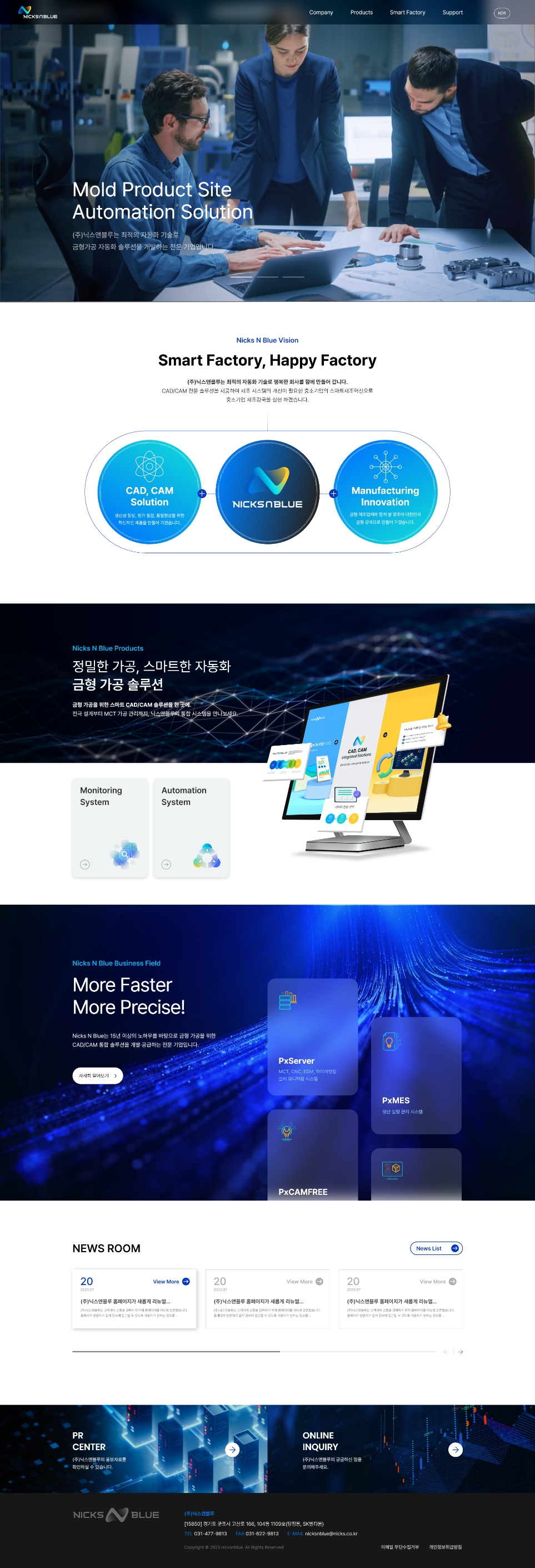 금형가공 솔루션 기업 닉스앤블루 홈페이지 제작